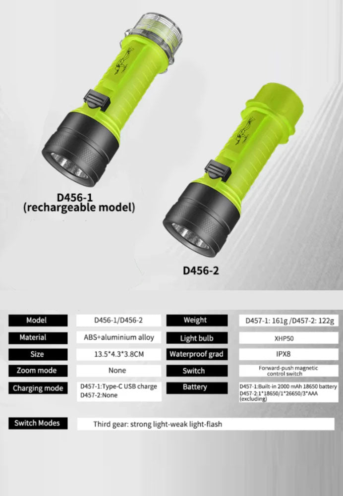 Suitable for night diving, cave diving, spearfishing, and underwater rescue