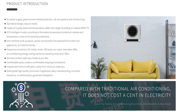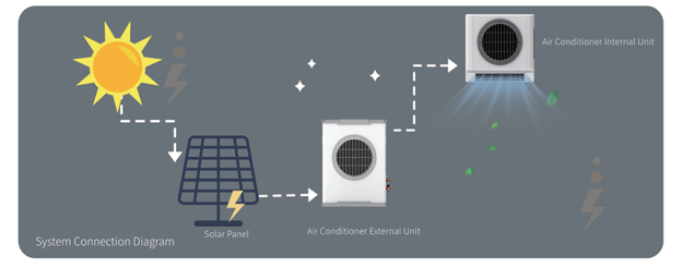 Outdoor Unit: DC-powered condensing unit with a brushless motor.