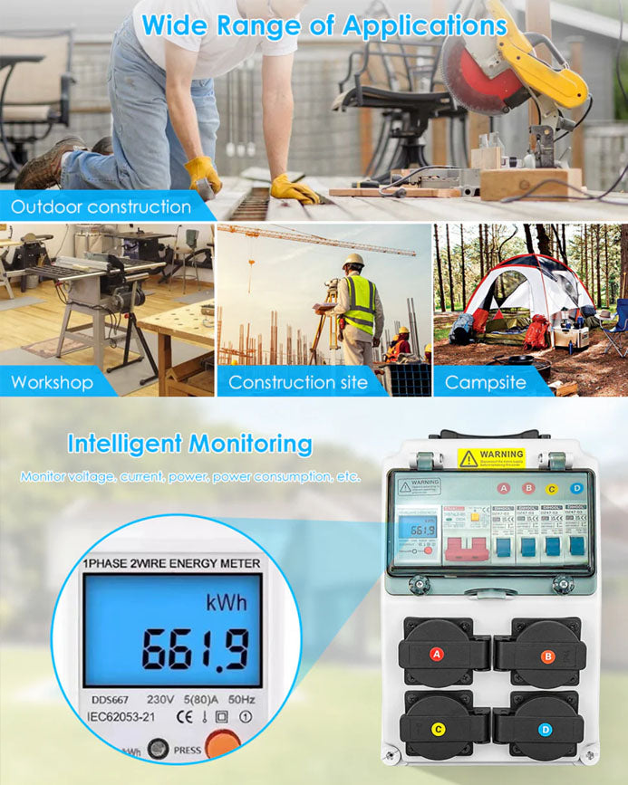 Power Distribution Box with Power Meter & 4 US Outlets