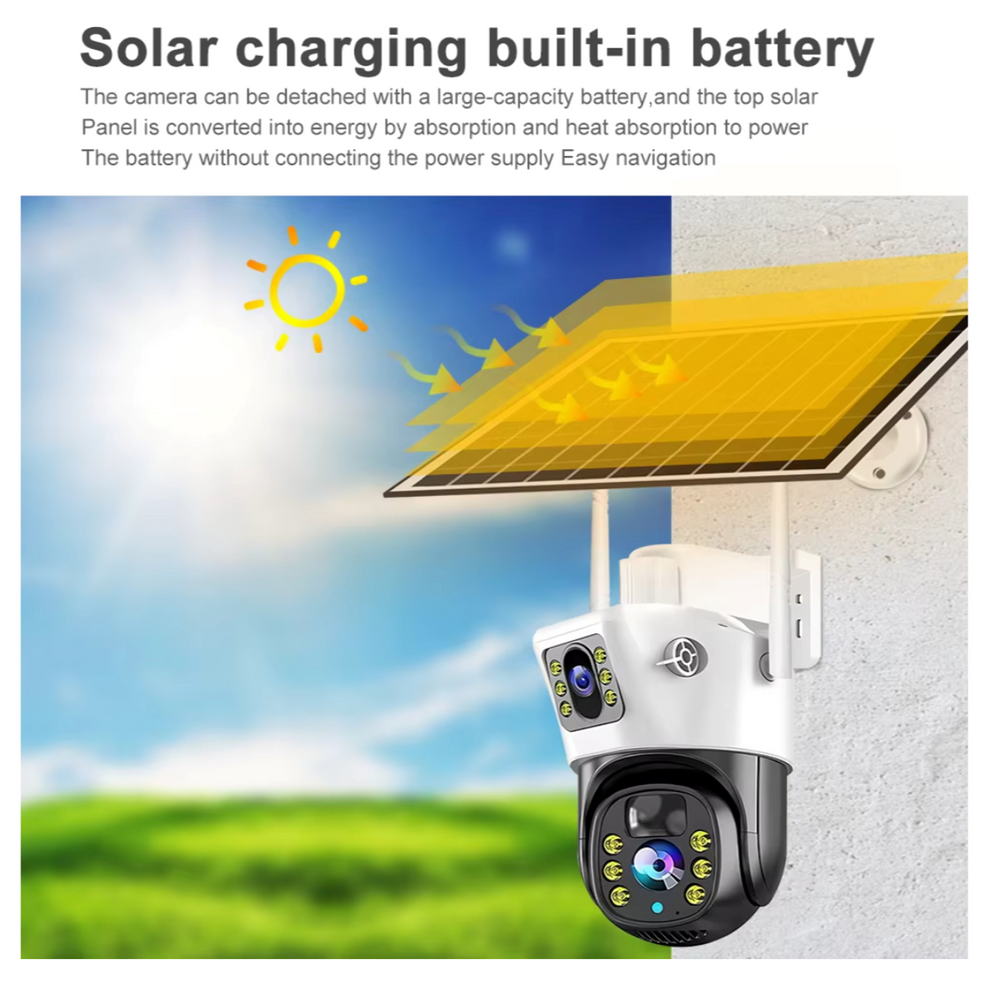 DuoView Pro Solar Security Camera – Dual Lens | Solar-Grid | 12000mAh | WiFi | PTZ
